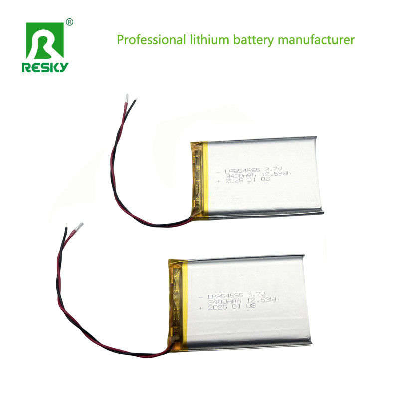Cella batteria ai polimeri di litio ad alte prestazioni con numero di modello 805085, che offre capacità di 4000 mAh a tensione nominale di 3,7 V.