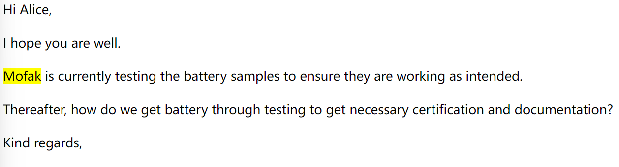 | 14 | Test di caduta | La cella deve essere fatta cadere da un'altezza di un metro due volte su un terreno di cemento. Nessun incendio, nessuna perdita |
